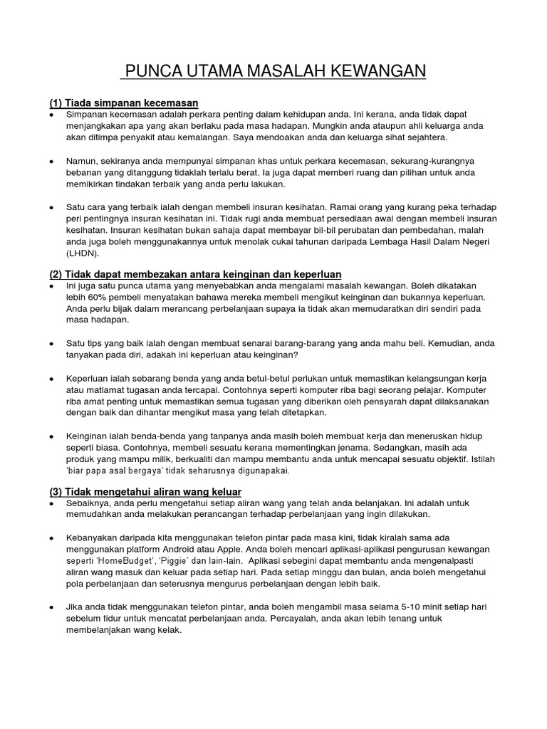 Punca Utama Masalah Kewangan Pdf